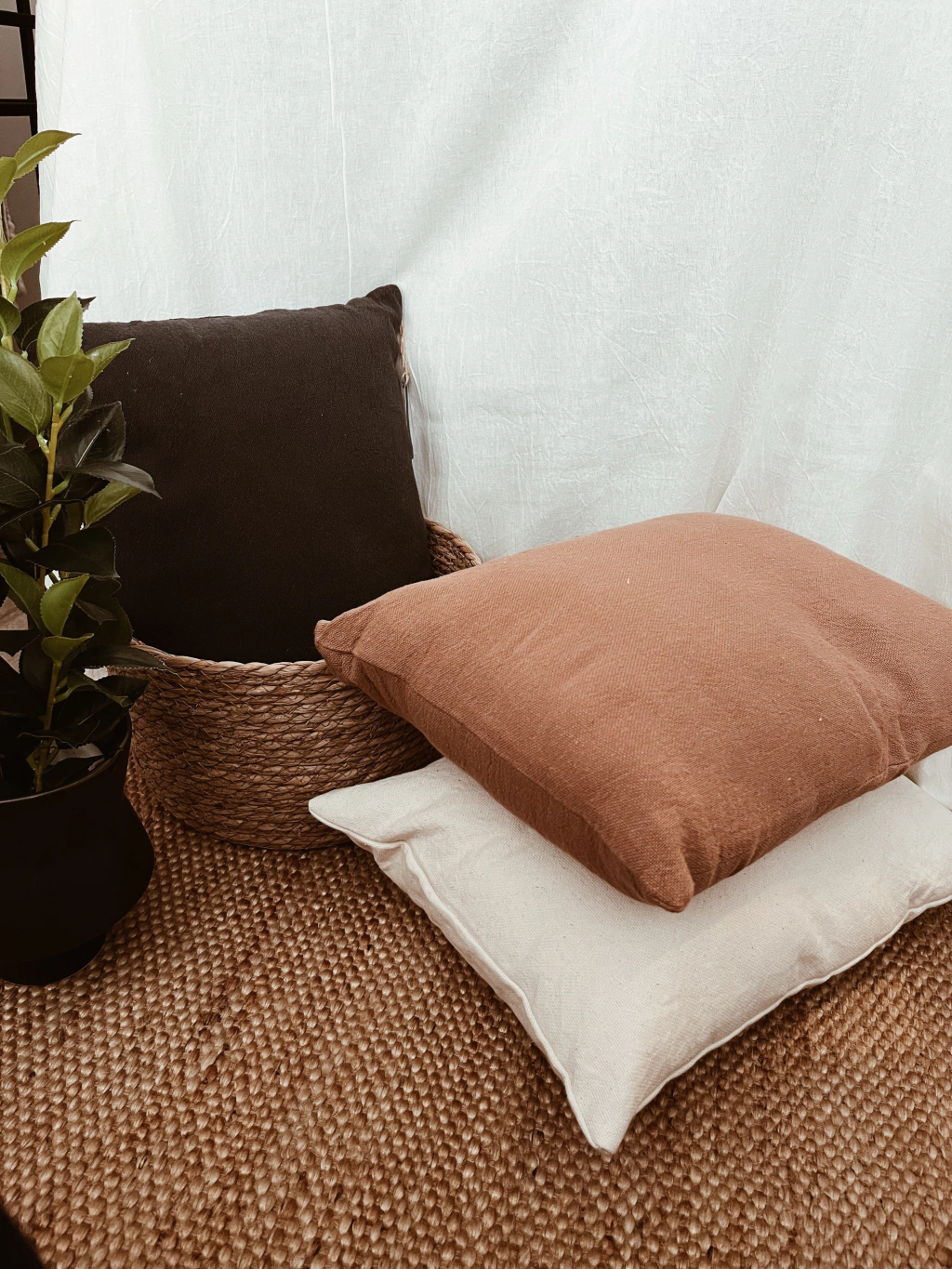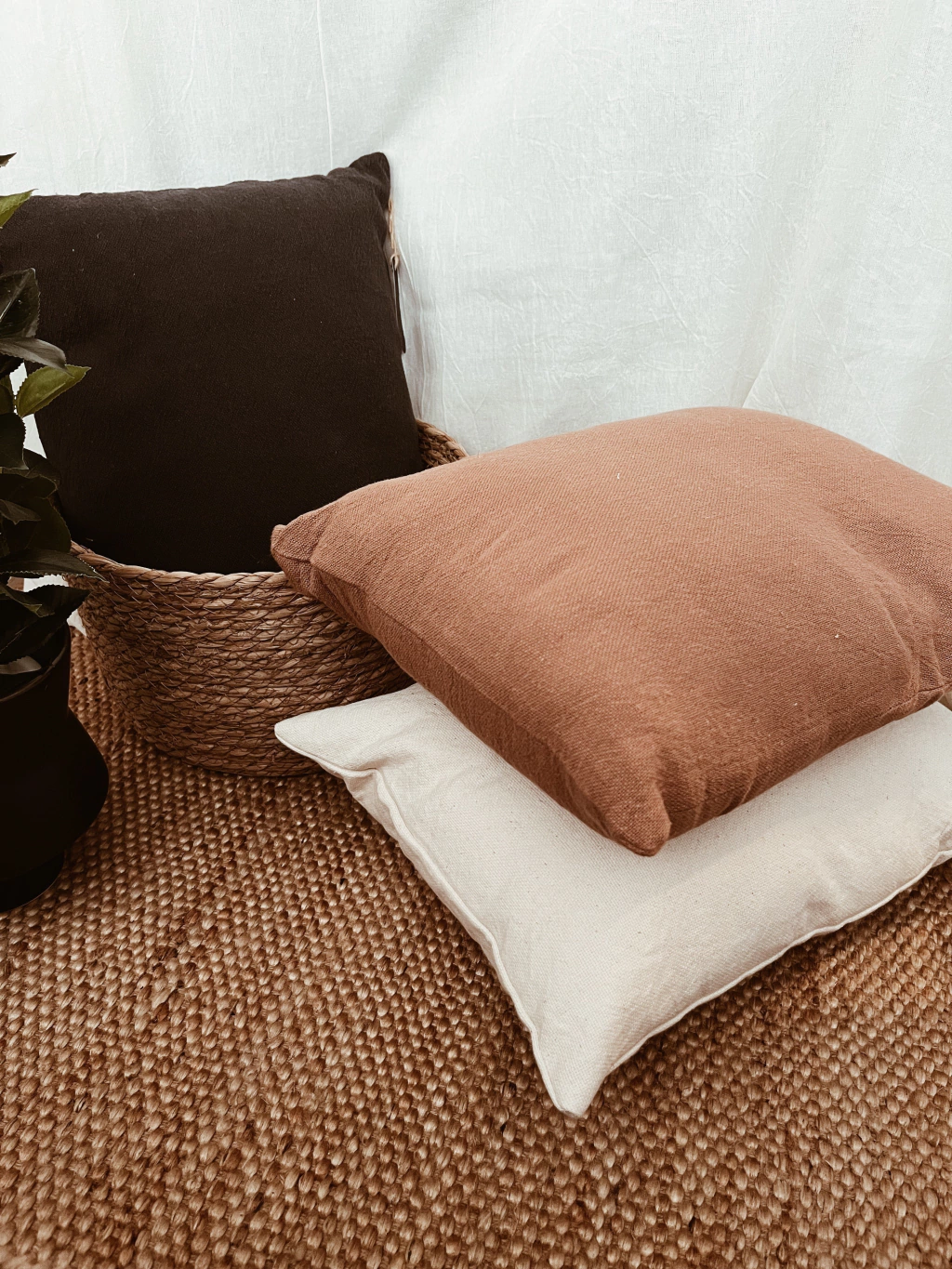Almohadón en tela panamá prewashed 100% algodón. 4 colores: grafito, canela, natural y ocre