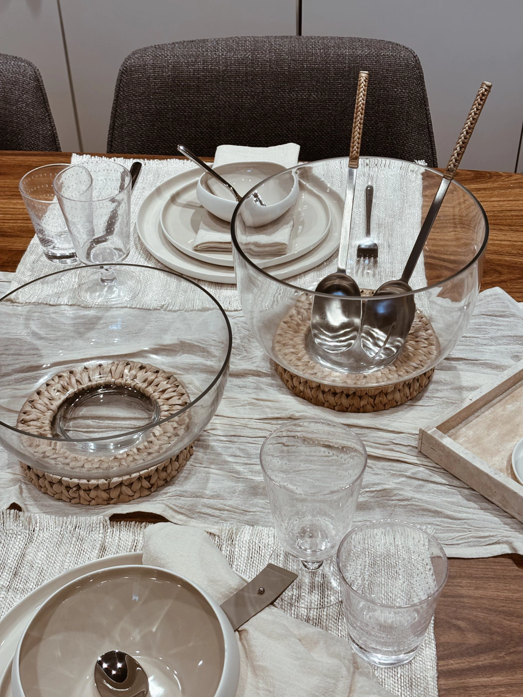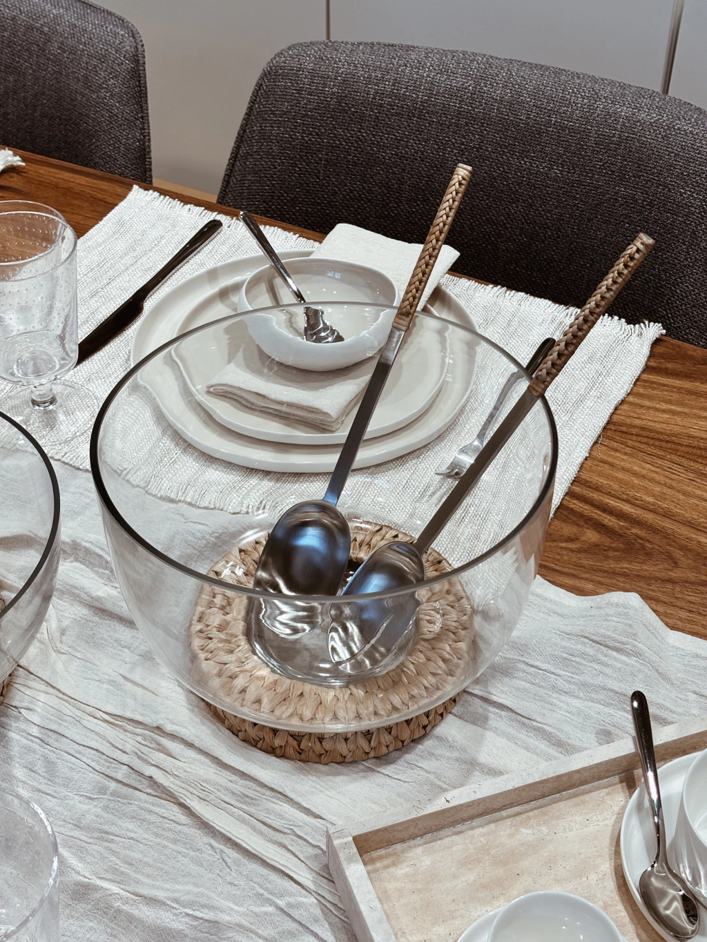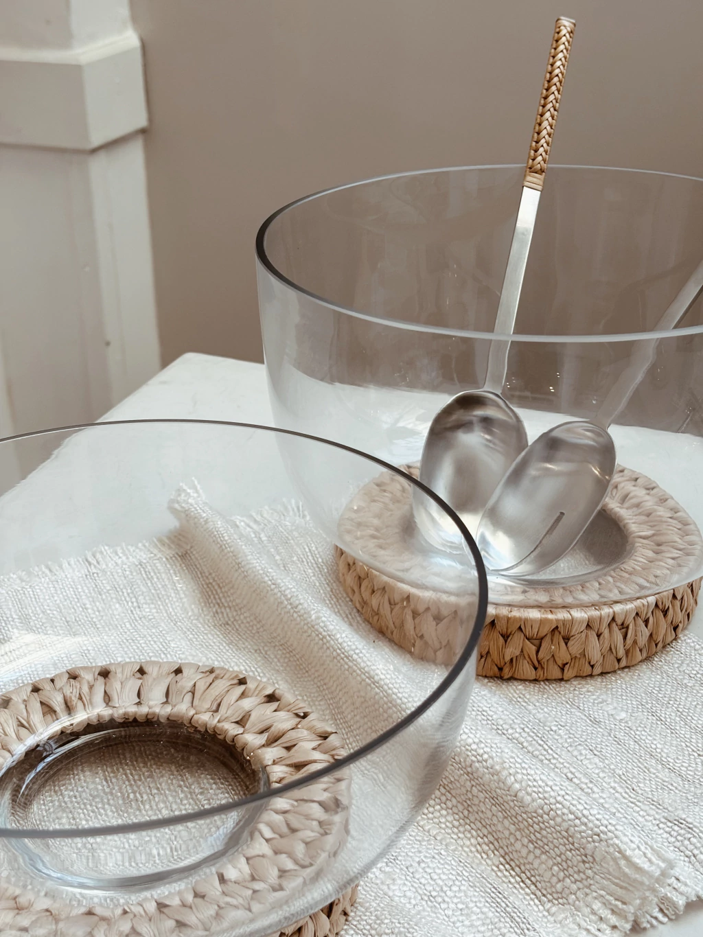 Bowl de vidrio borosilicato transparente redondo con base de fibras naturales desmontable para lavar
