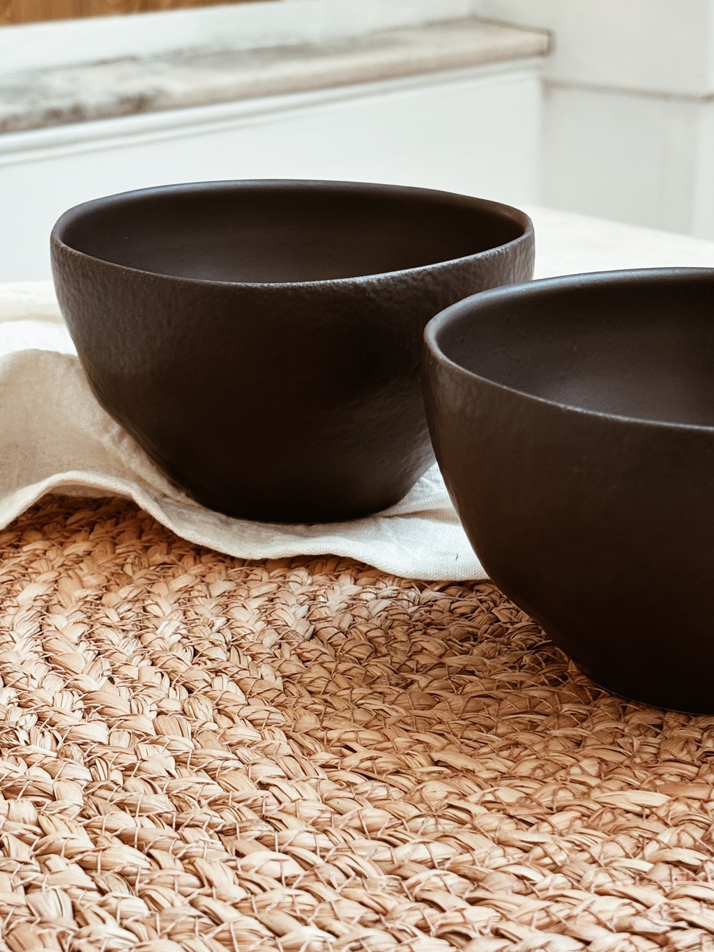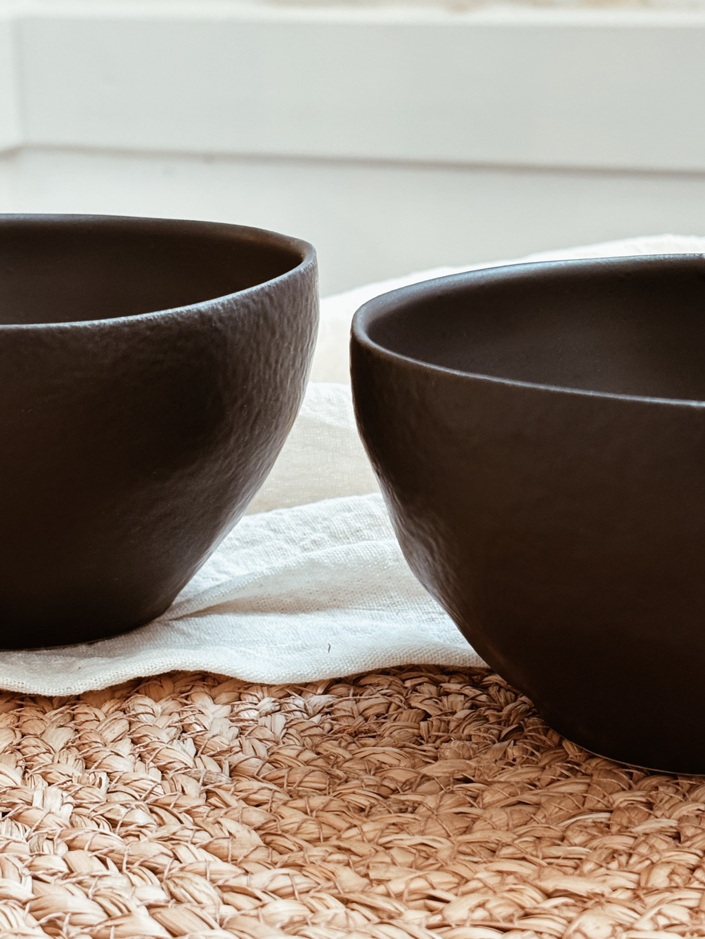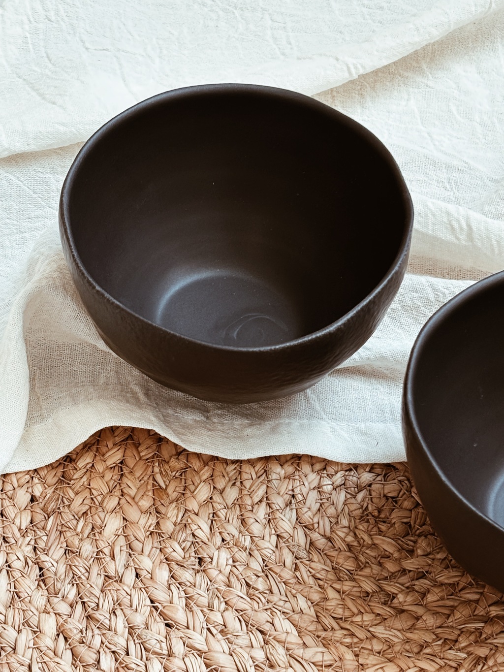 Bowl / compotera redondo de cerámica de gres color negro mate con terminación rústica