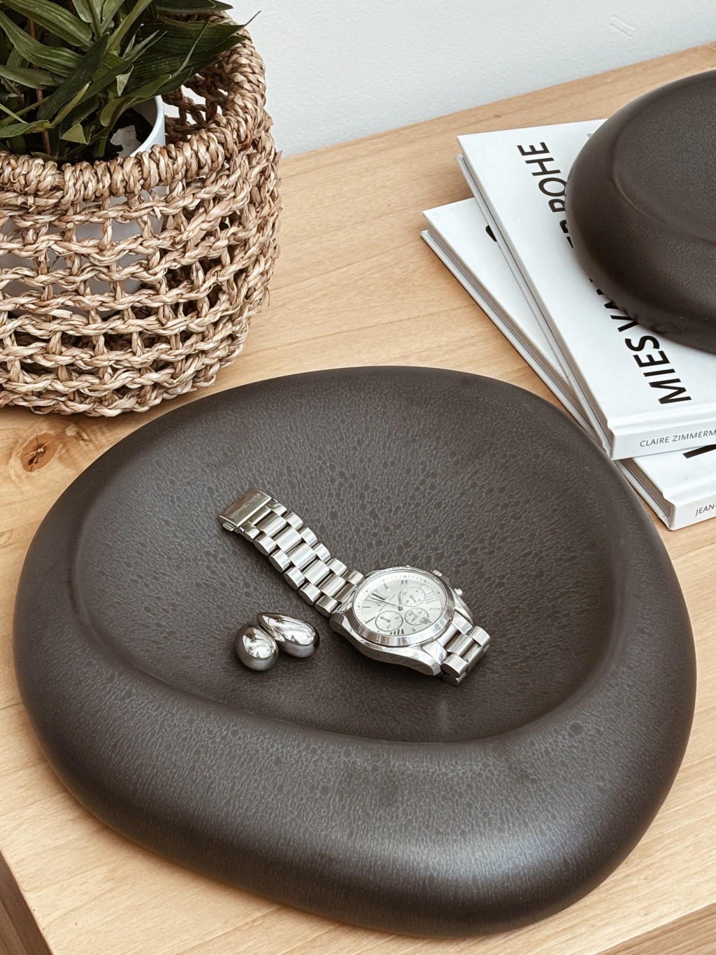 Base de cerámica negro mate con forma irregular