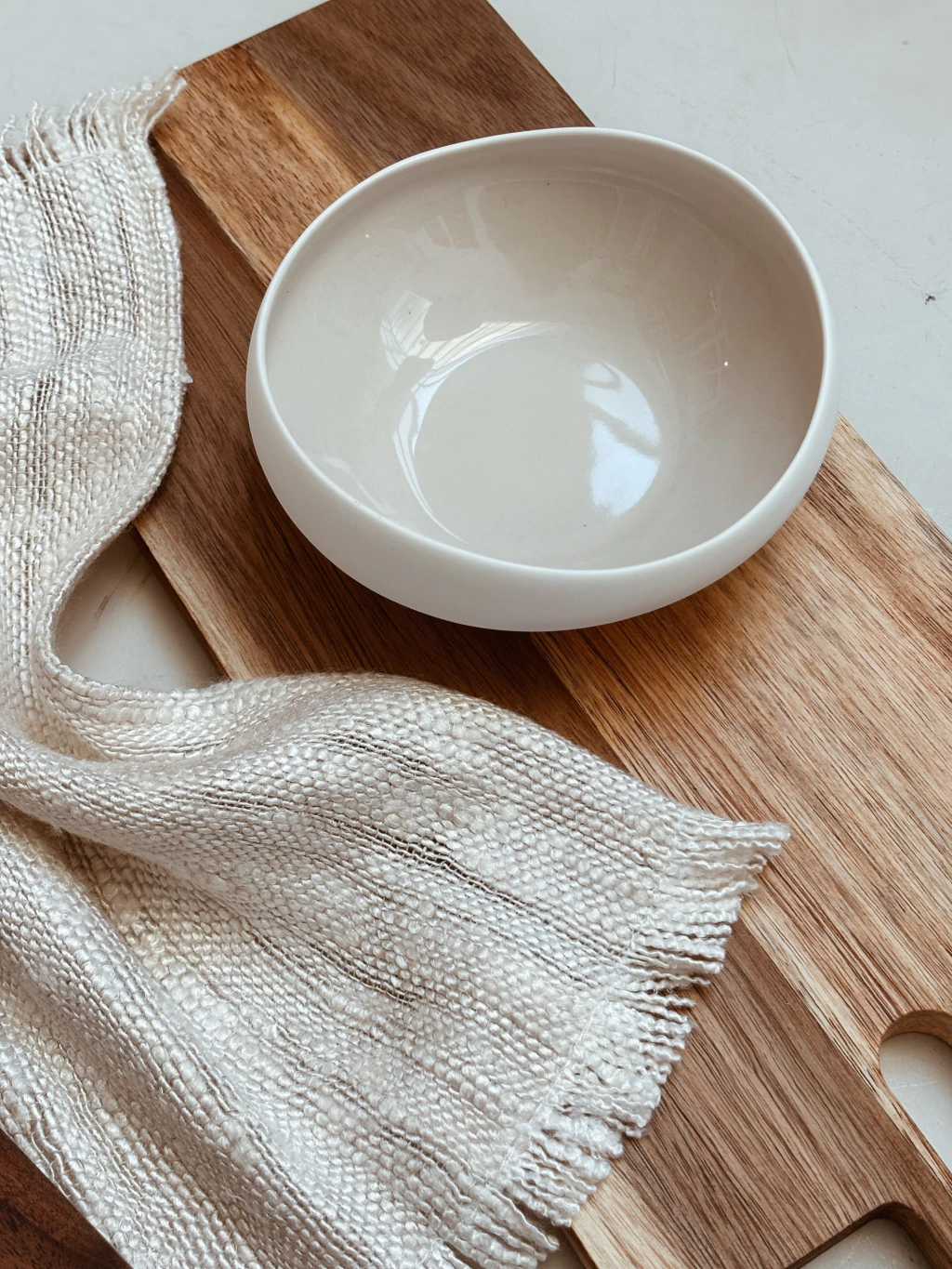 Set de 6 bowls / compoteras con forma irregular de porcelana esmaltadas por dentro en color beige y blanco mate por fuera