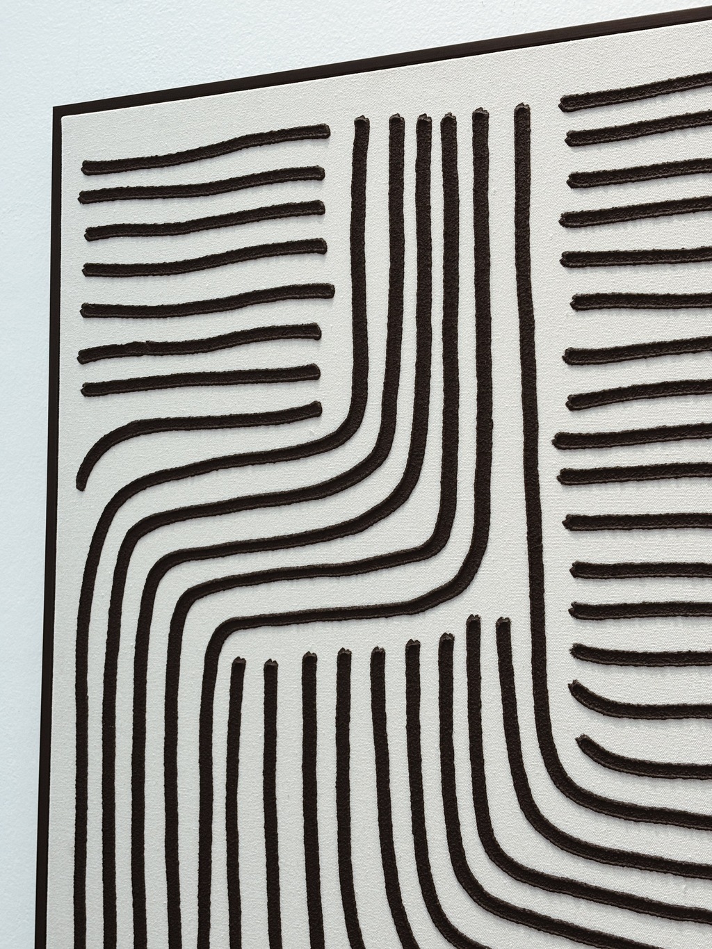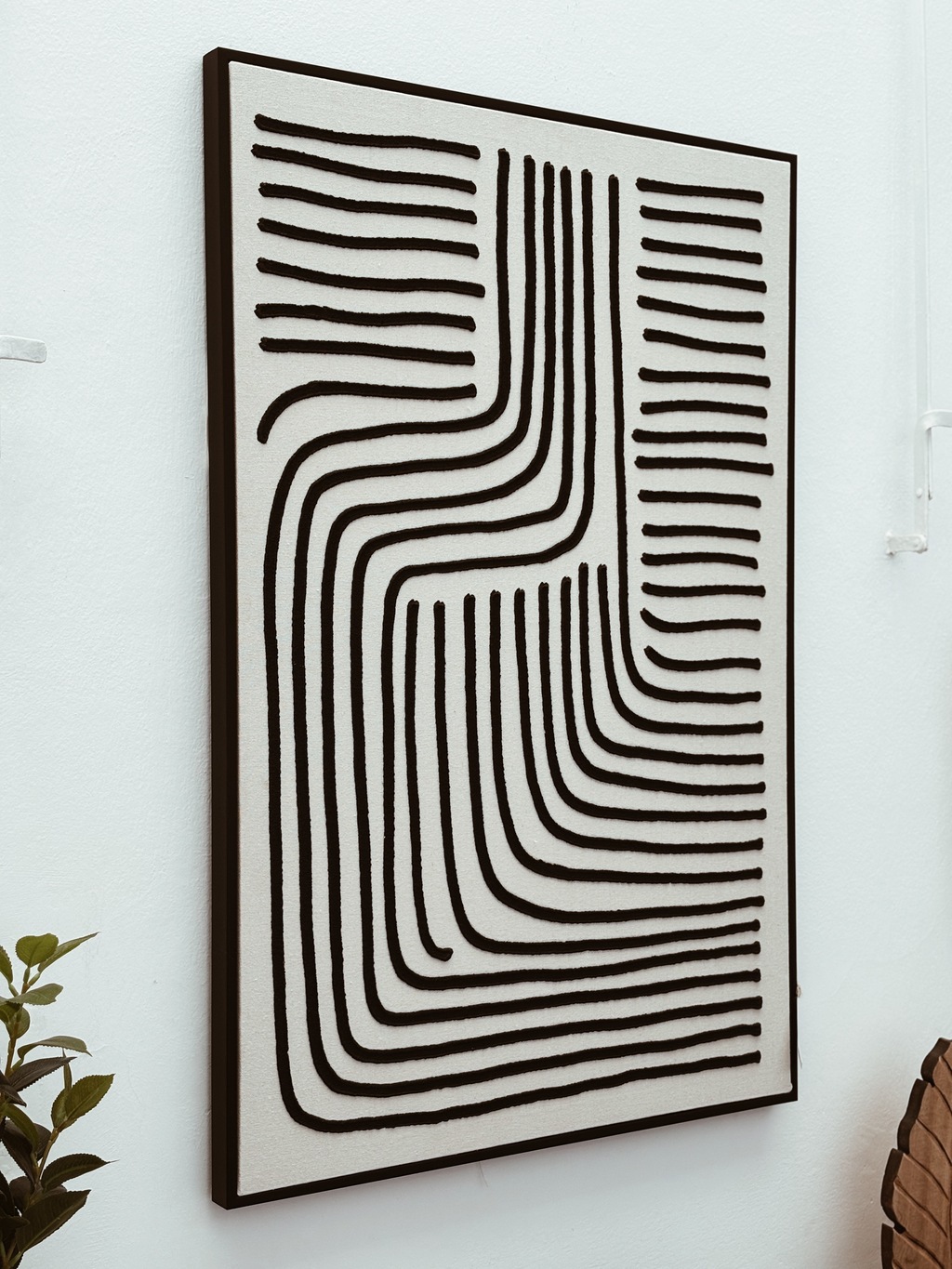 Cuadro importado con estructura de mdf, marco de poliestireno negro mate, lienzo de poliester, decoracion de yeso, pintura de acrilico y ganchos para colgar de acero.