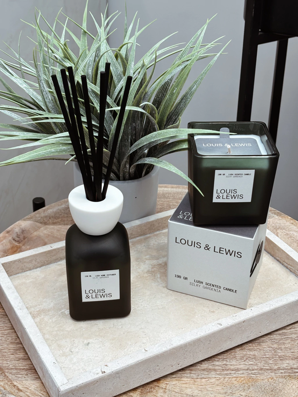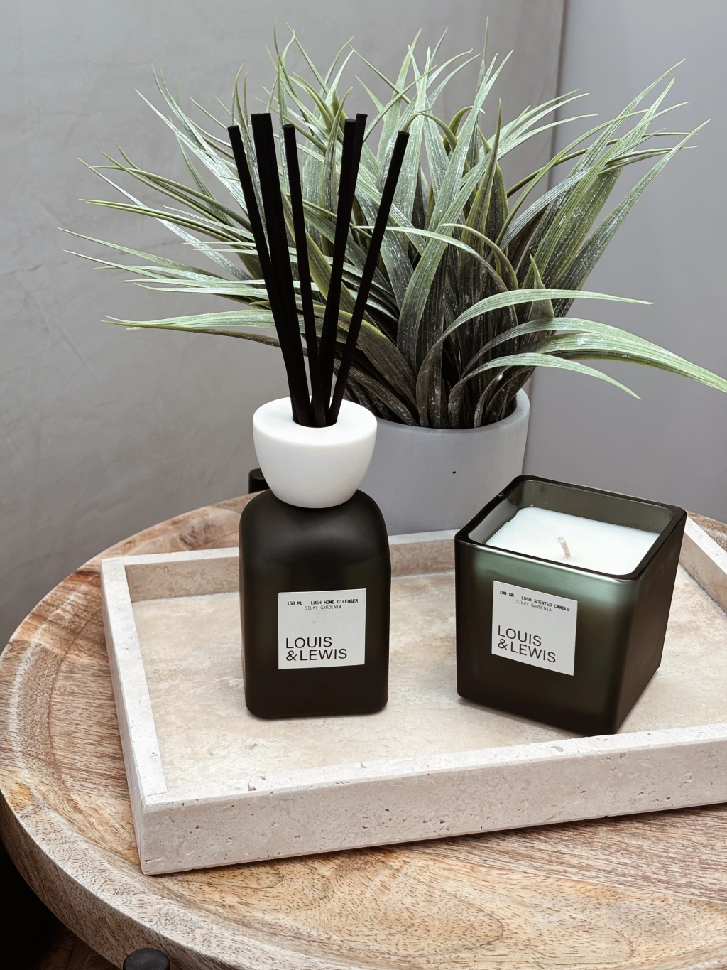 Difusor en envase de vidrio color verde terminación esmerilada. Familia de la vela Lush.