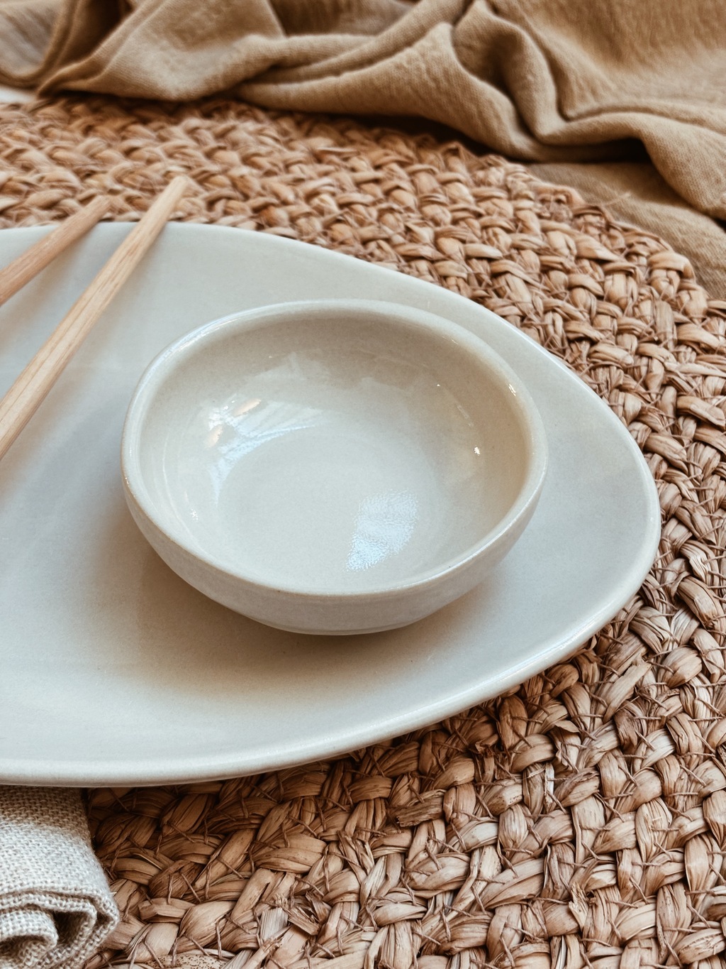 Dip redondo de cerámica de gres crudo, terminación brillosa con acabado rústico