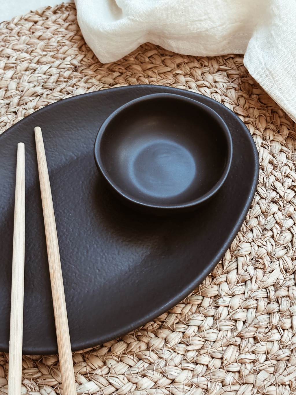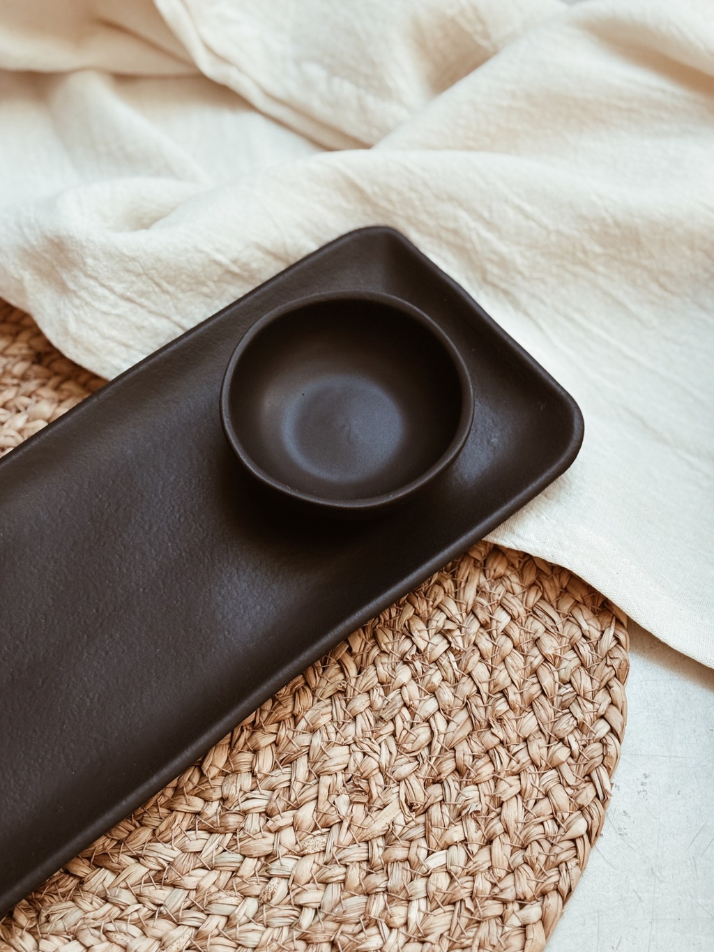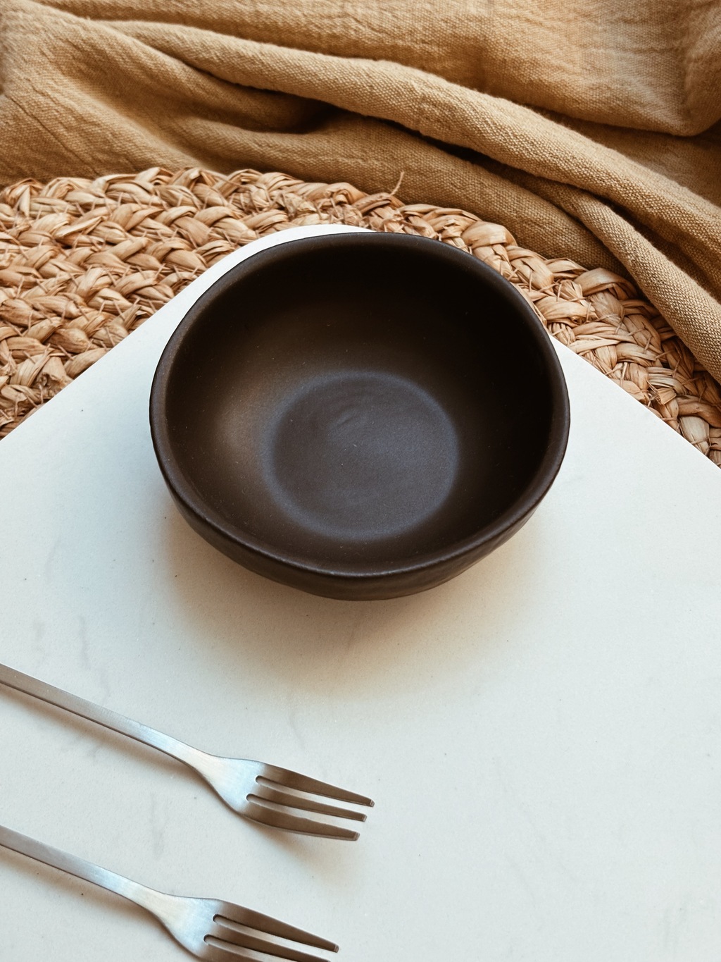 Dip redondo de cerámica de gres negro mate con terminación rústica