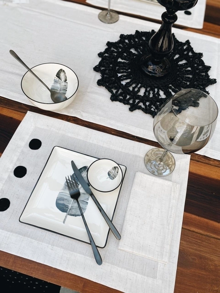 Individuales bordado en hilo de puro algodon color negro