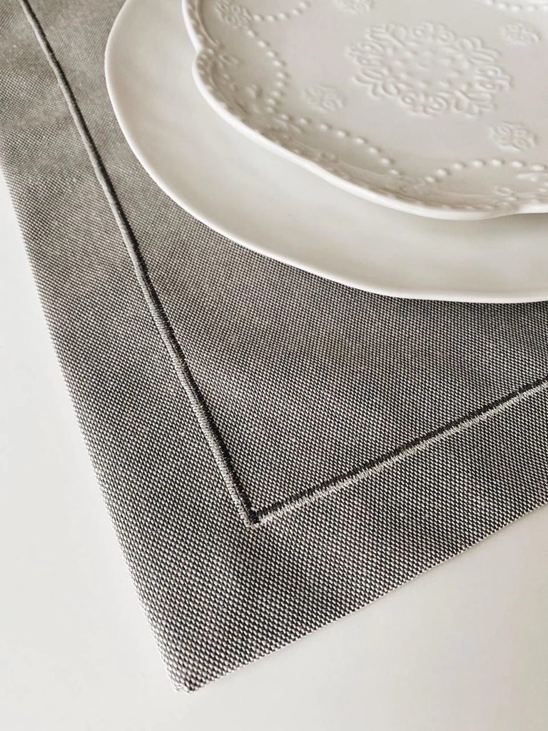 Individuales color gris con bordado perimetral en hilo de puro algodon
