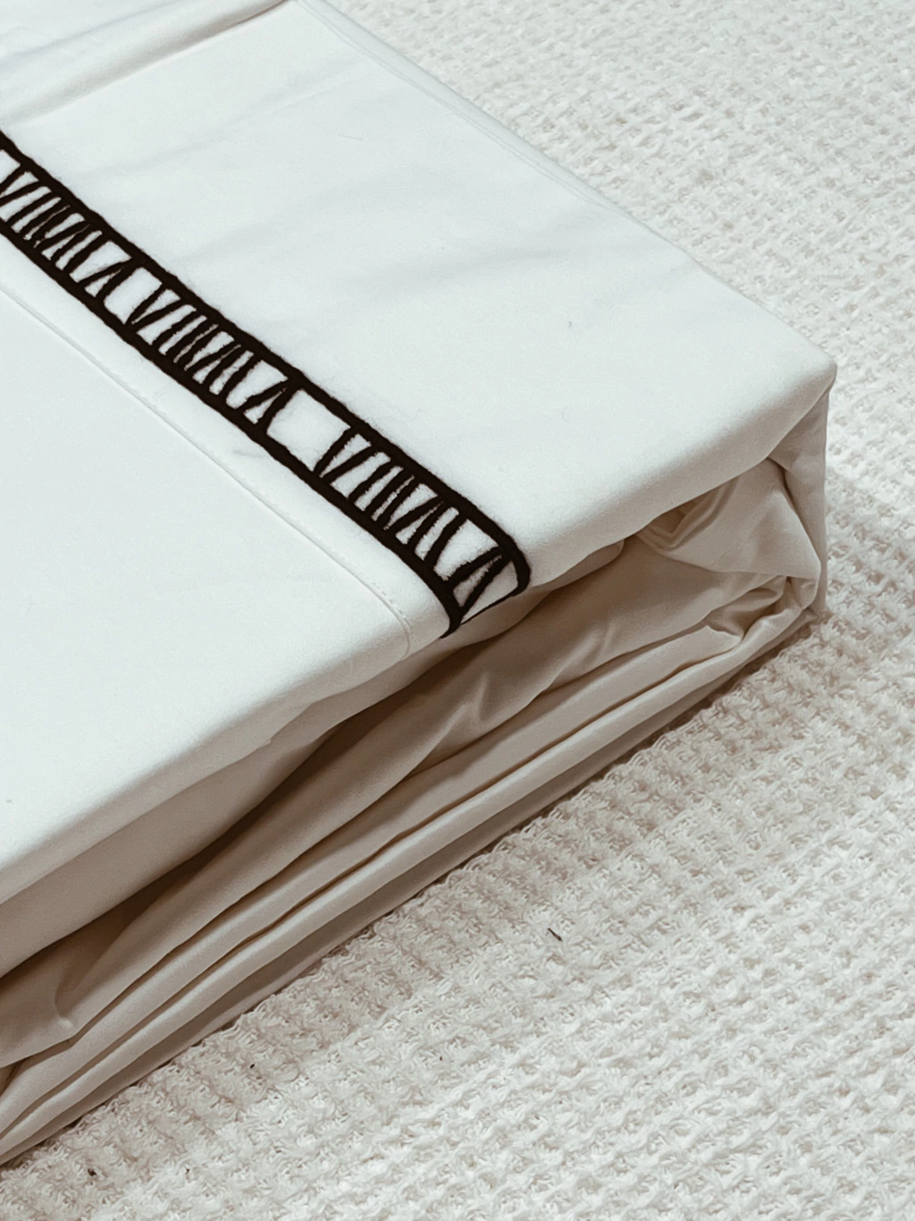 Color: Blanco con guarda bordada en hilo negro
