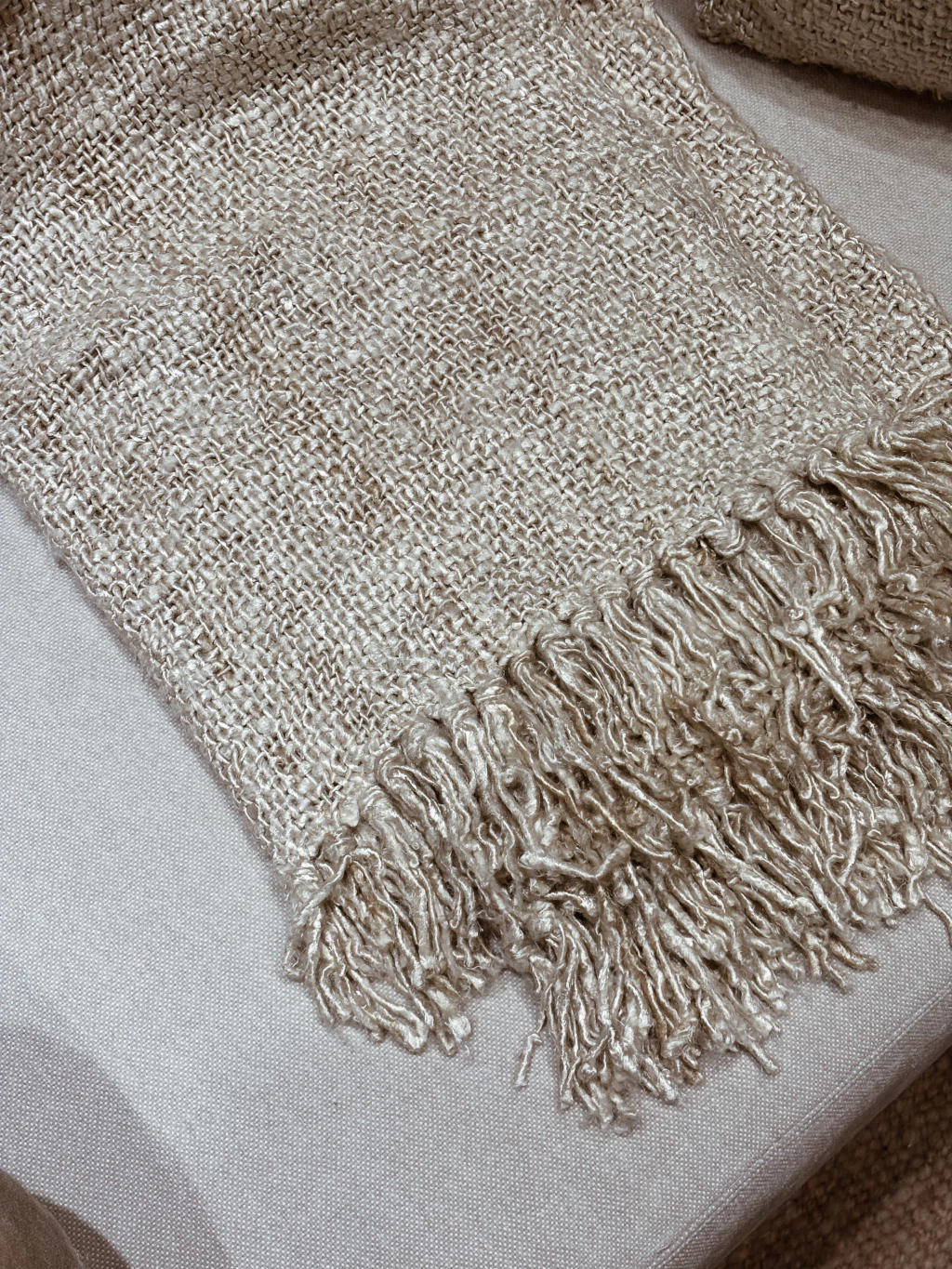 Manta tejida de algodón y viscosa color natural con flecos en los extremos
