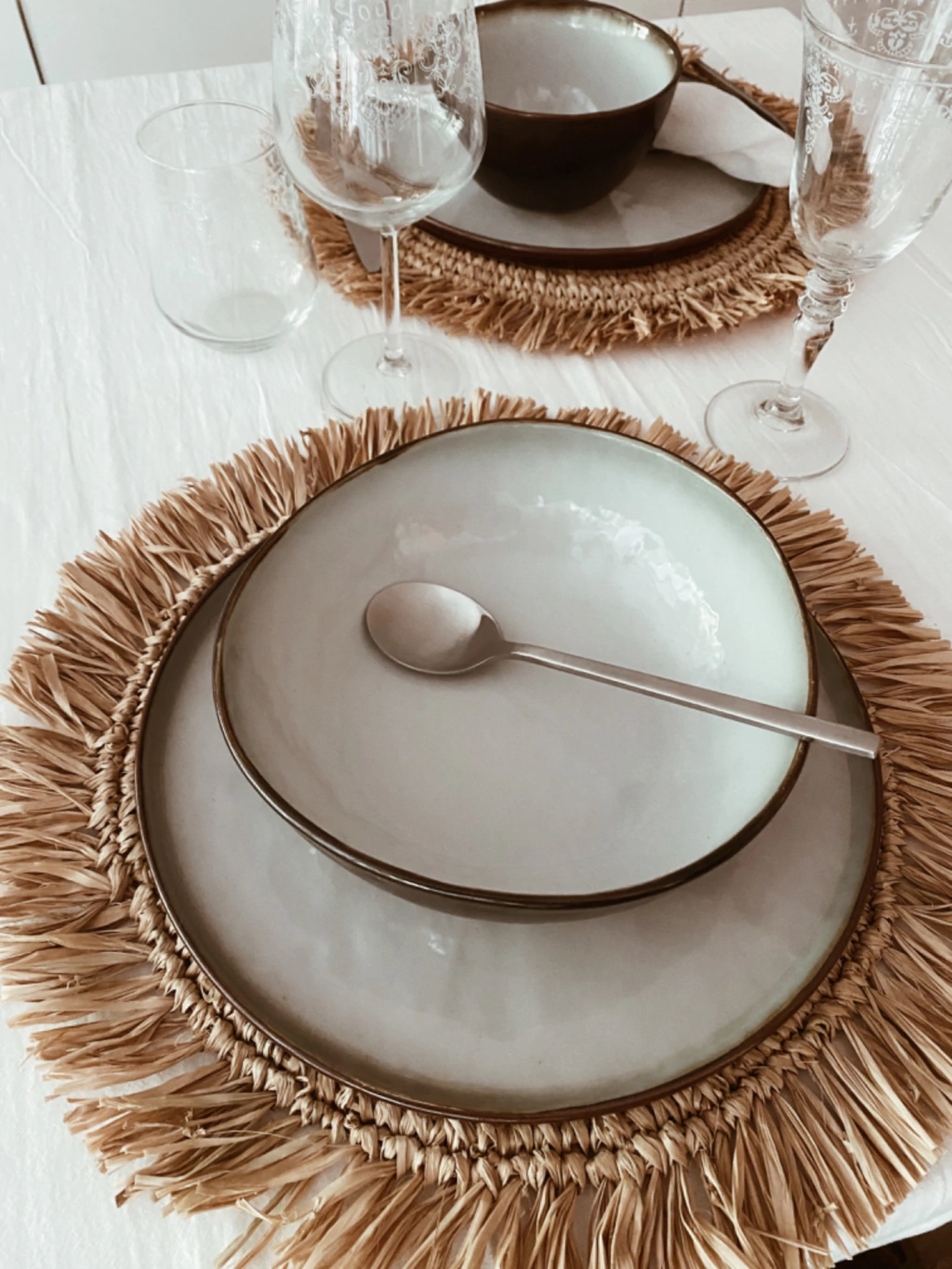 Bowl / plato hondo / plato de pasta de cerámica esmaltada color gris por dentro y marrón mate por fuera