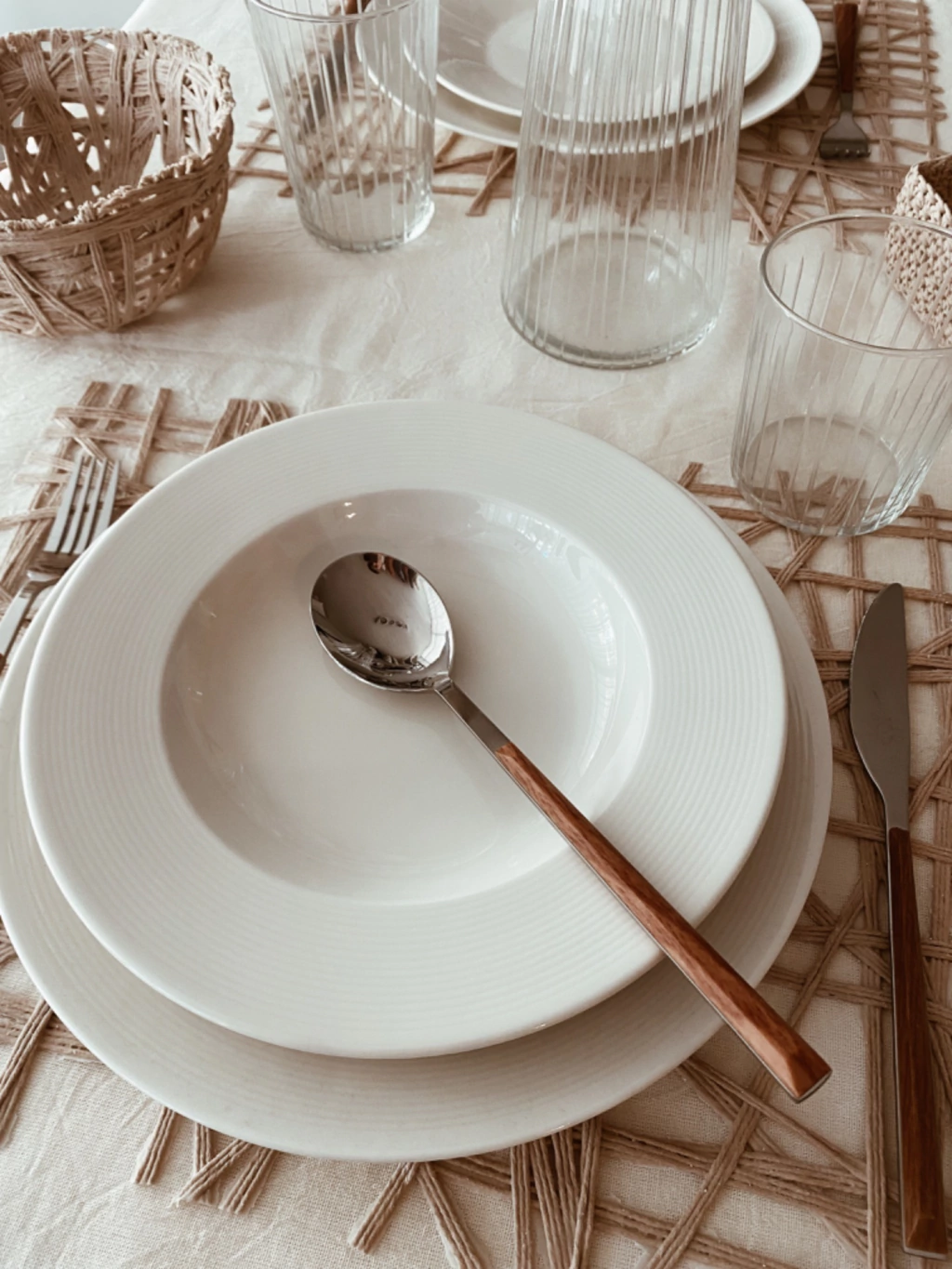 Set de 2 platos hondos de porcelana blanca brillante. Cuenta con un diseño de líneas circulares en el borde externo. Posee un estilo clásico y al mismo tiempo versátil, adaptándose tanto a mesas elegantes como tradicionales.