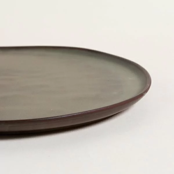 Set de 6 platos playos de cerámica, color verde y óxido, esmaltado semi-mate.