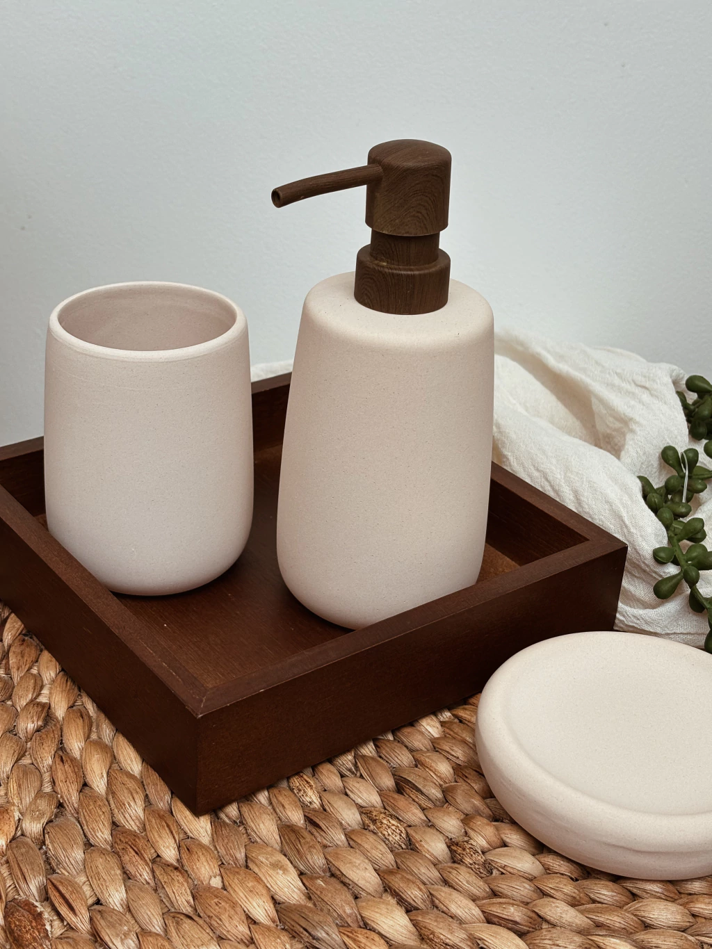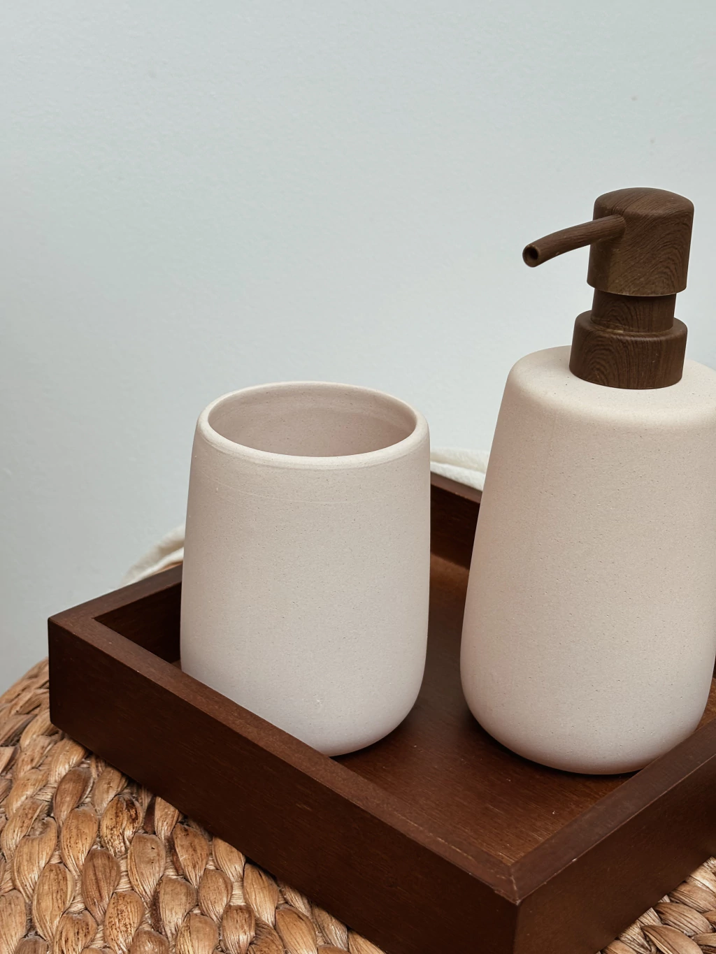Portacepillo de cerámica color beige/rosado claro terminación mate