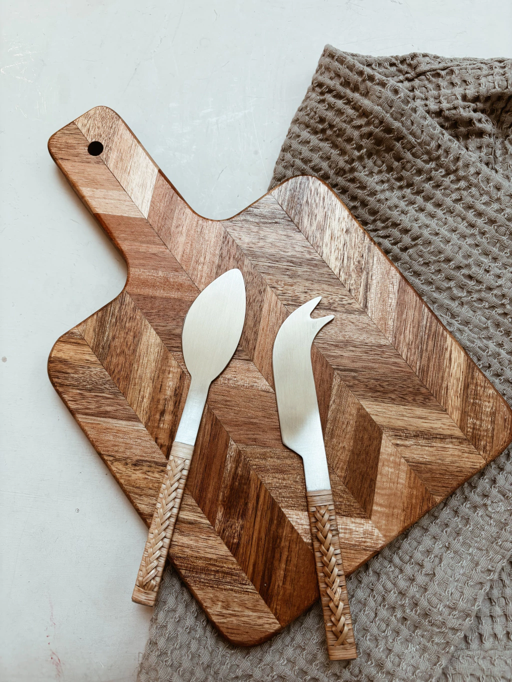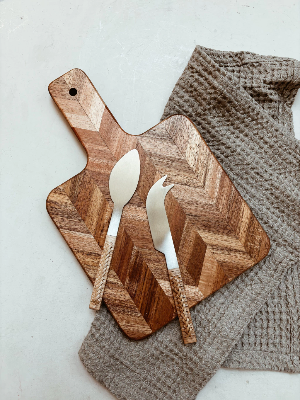 Tabla rectangular de madera de acacia con diseño en zig zag