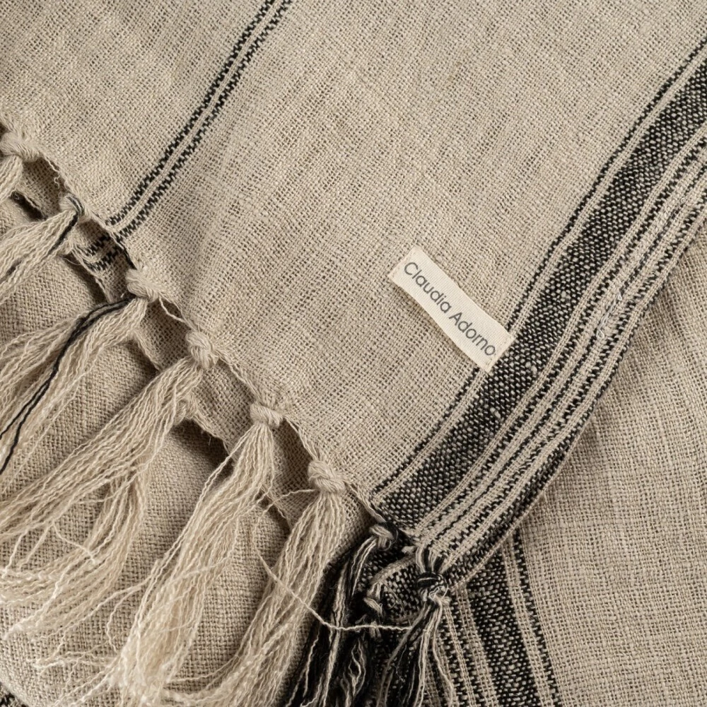 Manta 100% lino color beige con negro