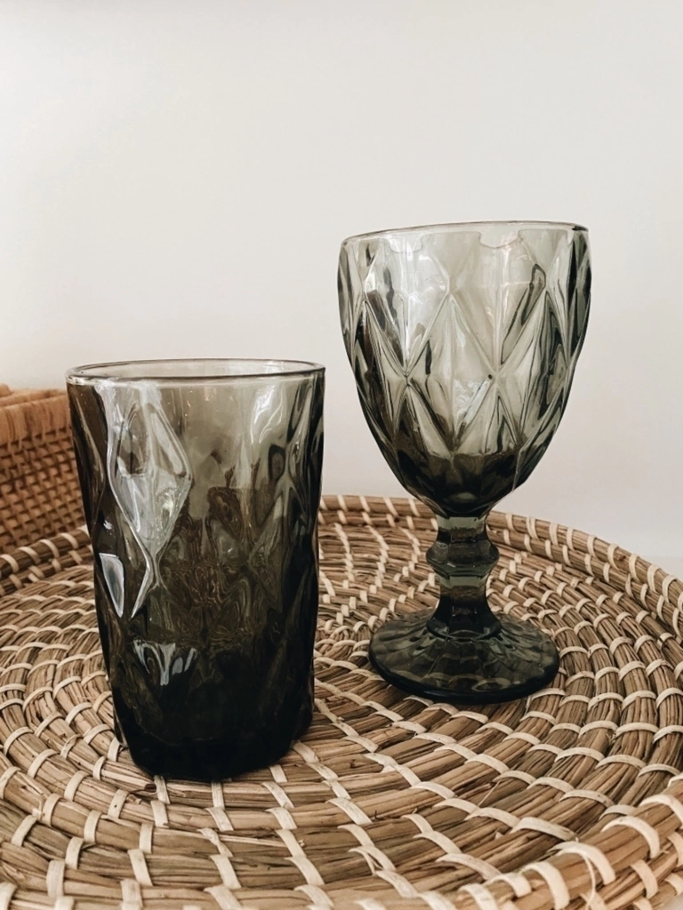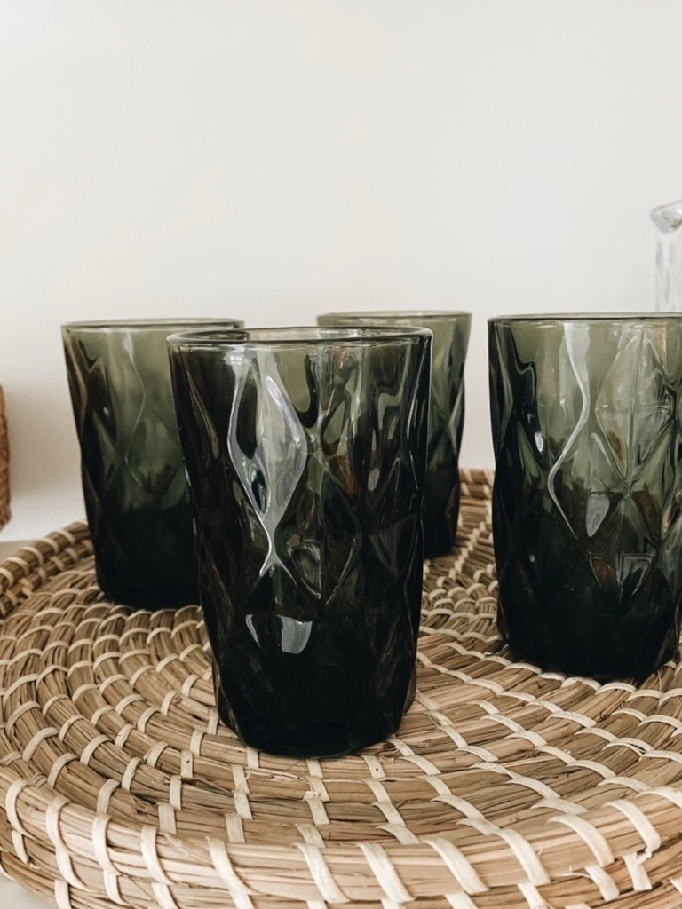 Set de 6 vasos de vidrio gris oscuro labrado