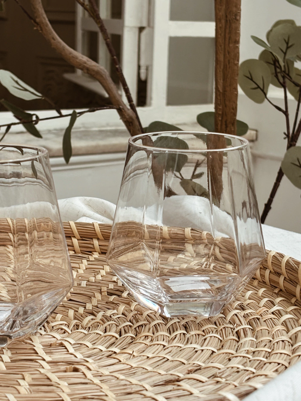 Elegantes y modernos, set de 2 vasos donde podrás experimentar de un disfrute visual de tu bebida preferida gracias al vidrio transparente y a su estructura en forma de diamante. Lucirá perfecta en cualquier reunión o evento.